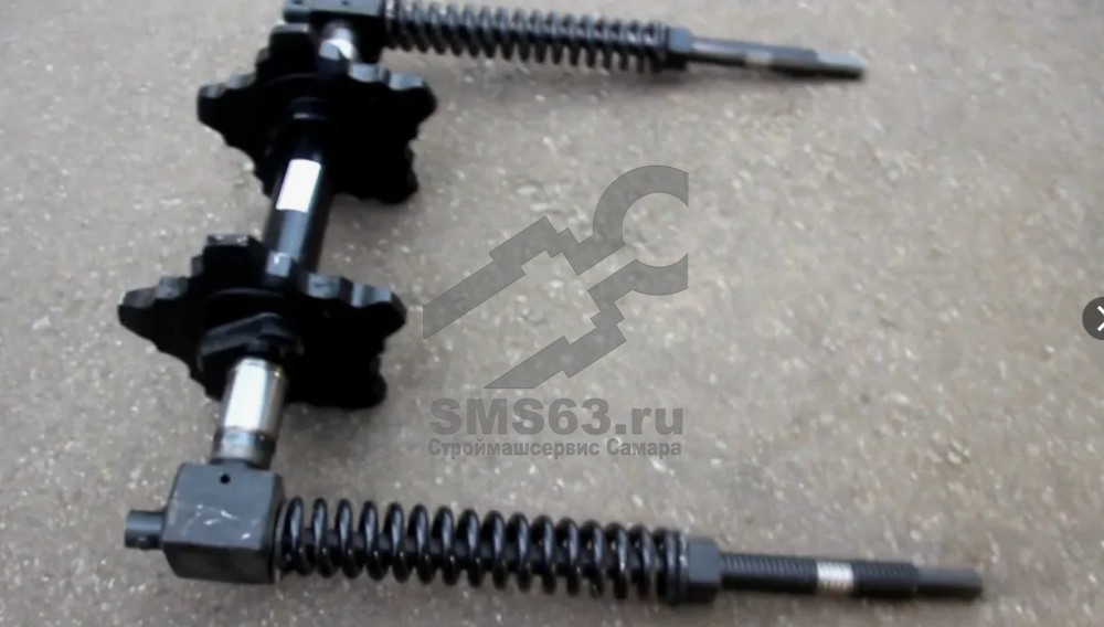Вал поставляется в сборе. Он включает в себя ось, 2 направляющие опоры, 2 натяжные пружины, 2 звездочки и кронштейны. Механизм легко монтируется на оборудование для разбрасывания песка и реагентных смесей строго по инструкции изготовителя.