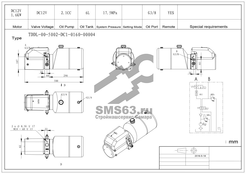 (12 MPa. DC24V 1,6KW. 12L Tank. Valve DC24V. Port G3/8")