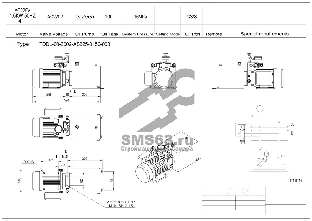 Купить Станция насосная гидравлическая TDDL-00-2002-AS225-0300-001: 22MPa. 220V 3 KW. 2850RPM 2,5cc/r 20L Tank. steel square horizontal. DSG-02-3C6-AC220V. Port G3/8" With Pressure gage вы можете в компании Строймашсервис, оформив заказ в интернет магазине, или