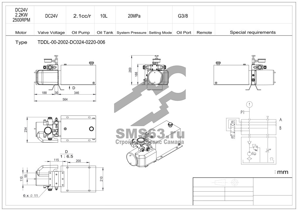 Купить Станция насосная гидравлическая TDDL-00-2002-DC024-0220-006: 20MPa. 24V 2,2 KW.2500RPM 2,1cc/r 10L Tank. steel square horizontal. DSG-02-3C6-DC24V. Port G3/8" With Pressure gage With the bracket for motor and the protect cover for motor вы можете в компании Строймашсервис, оформив заказ в интернет магазине, или